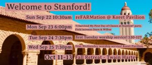 WEDNESDAYS: Chi Alpha meets in Koret Pavilion 7:30-9:00pm Wednesday evenings.