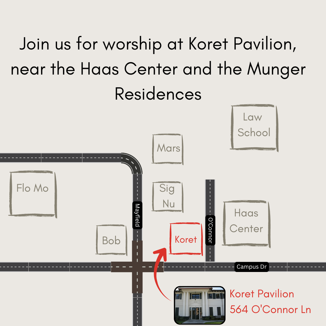 WEDNESDAYS: On Wednesday, Oct 15 and thereafter Chi Alpha will be in Koret Pavilion on Wednesday evenings.